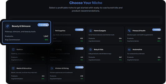 A: Absolutely! You can run as many niches as you want—Beauty, Pets, Home, Fitness, Tech, and more. Create separate content streams for different audiences or manage multiple affiliate channels from one dashboard.