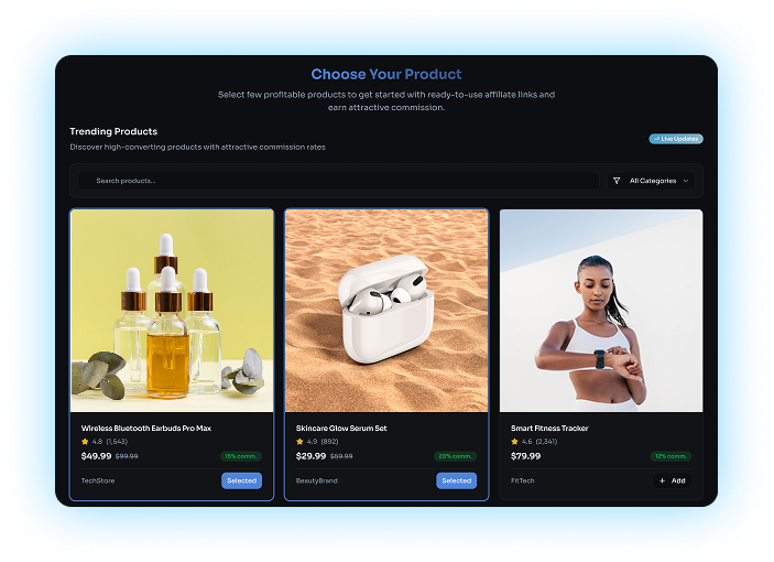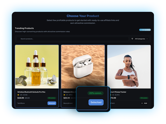 Can't edit videos? Don't know how to write scripts? Camera shy? Doesn't matter. AI handles the content creation. You just pick products and collect commissions.
