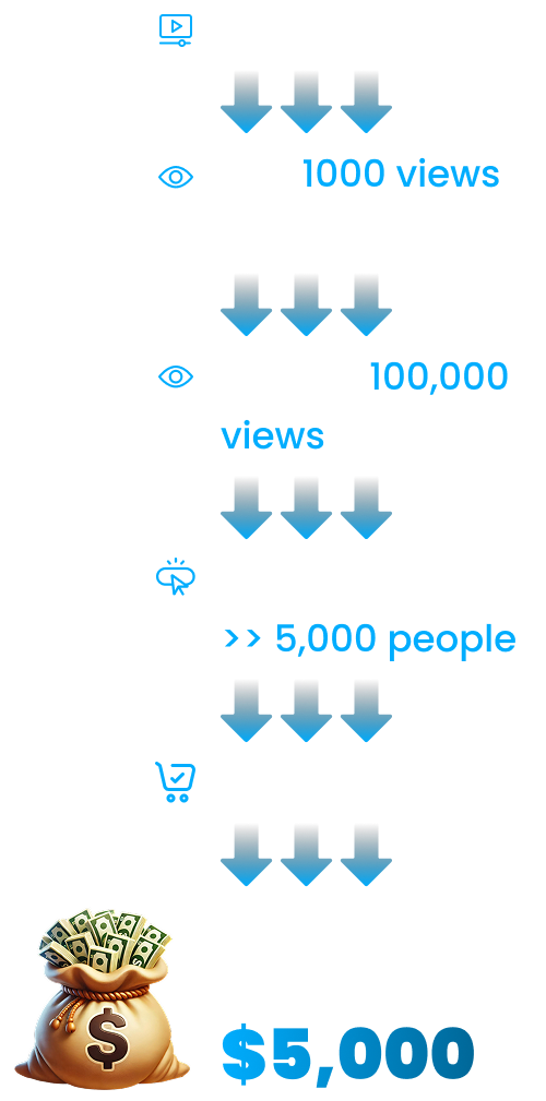 Funnel a tidal wave of engaged shoppers directly to your affiliate products. With the right video strategy hitting 3 platforms simultaneously, you can transform views into clicks. Watch your dashboard explode as buyers flood through your links, ready to purchase what you're promoting.